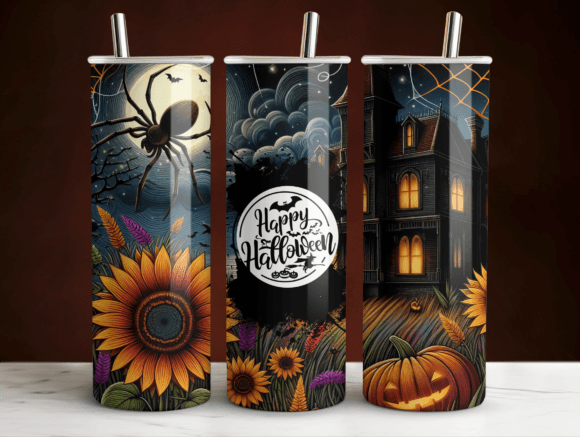 Copos metálicos decorados com tema de Halloween
