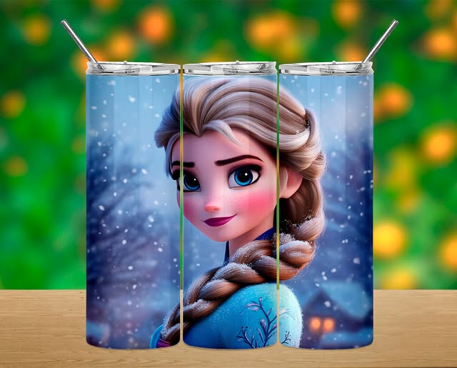 Três copos de aço inoxidável com imagem da Elsa de Frozen